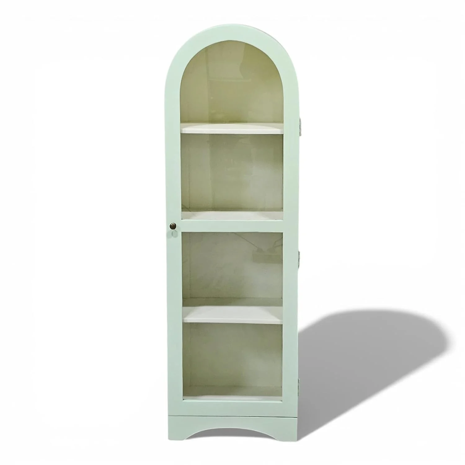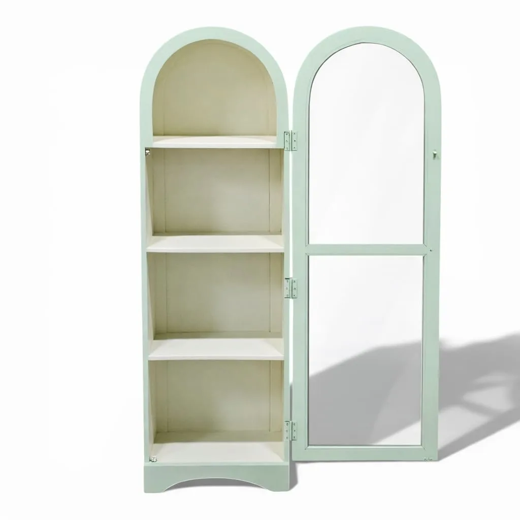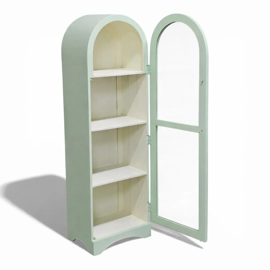 This arched display cabinet features a glass door design that beautifully showcases books, décor, and collectibles. Crafted for both display and storage, it keeps your essentials organized and dust-free. The elegant silhouette adds a refined touch to living rooms, bedrooms, or study spaces. Ideal for modern and classic interiors alike.