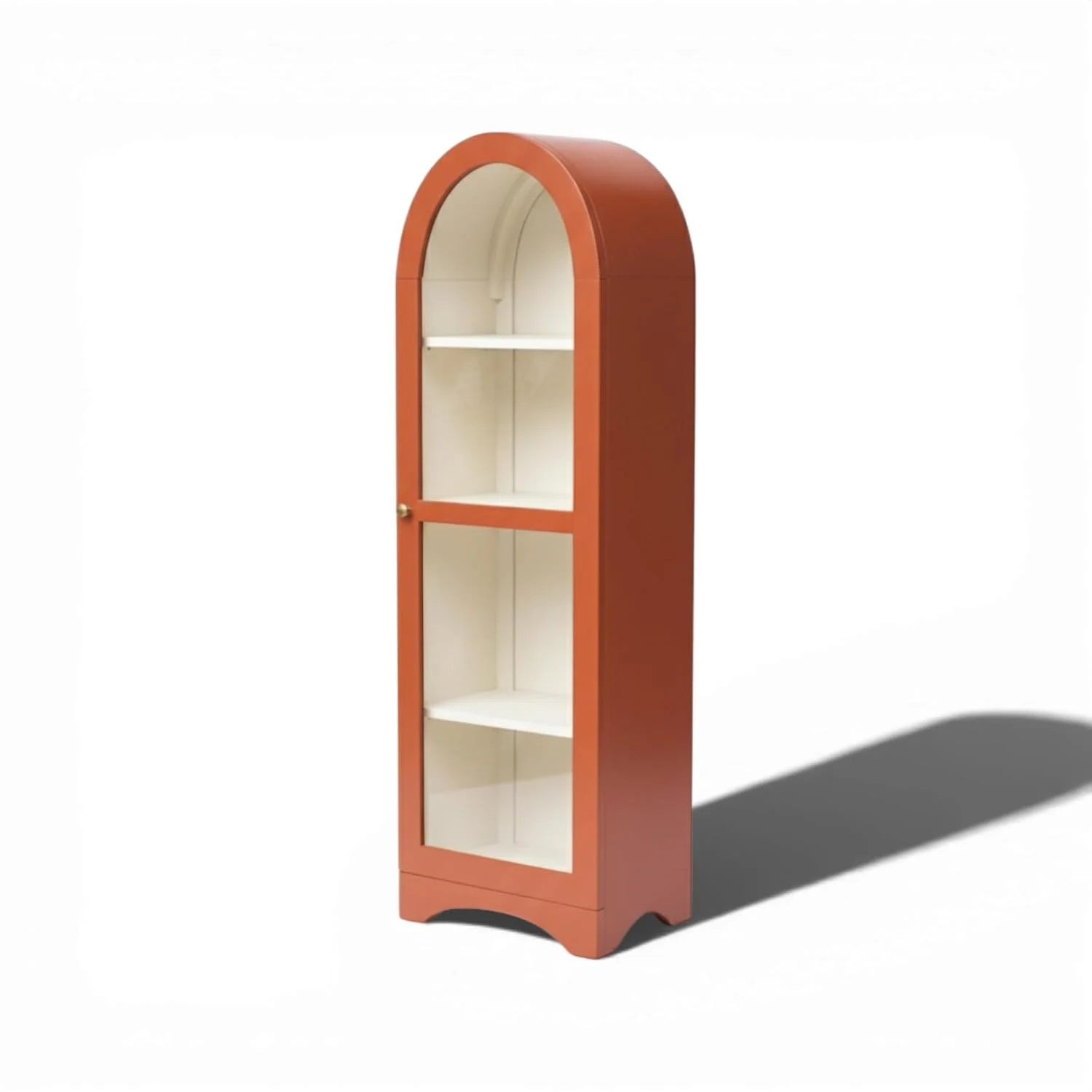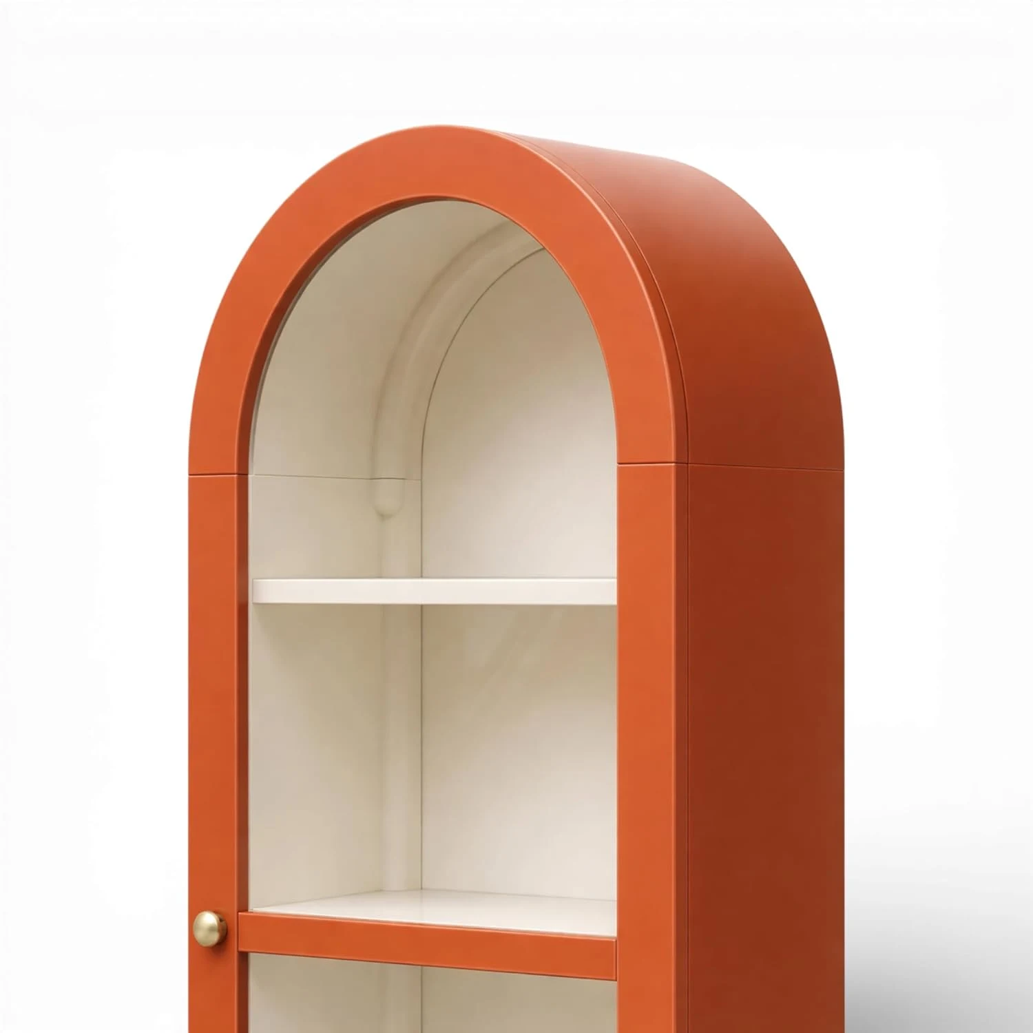 Arched Display Cabinet | Glass Door Cabinet – Vibrant Burnt Orange