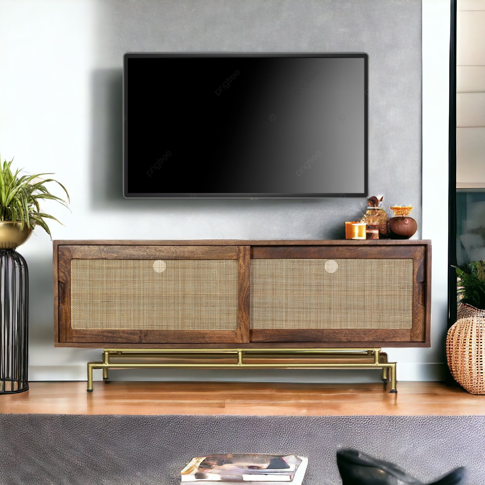 The perfect place to sit your television and trinkets, the Atalanta TV Unit is a functional and easy on the eye piece that will not disappoint. It also includes Two sliding doors with cane work which makes the Atalanta TV stand a timeless addition to your living space . These doors with cane work and the tubaq finish on Mango wood gives the TV cabinet a magnificent look and a sight that is both industrial and sophisticated. There is a shelf in the centre of TV cabinet allowing ample of space for your everyday bits and bobs. Use the large surface area for the audio visual equipment and hide the games, DVDs, CDs, cables and leads in the combination of open and closed storage. The intricately detailed metal finish is perfect for industrial living schemes as well as ultra-modern and more classic décors
