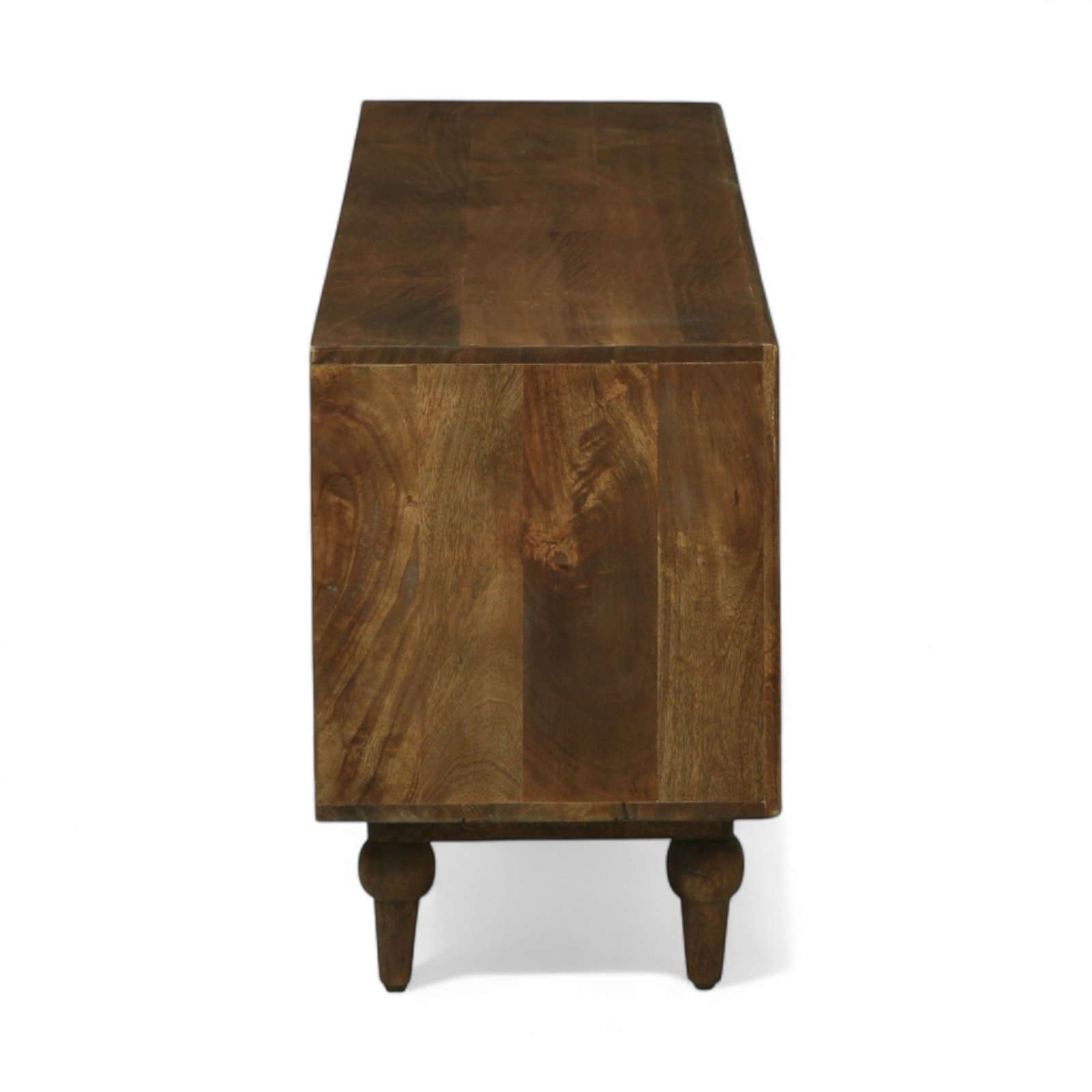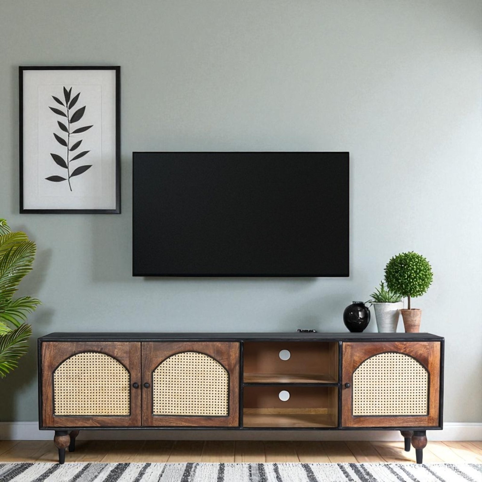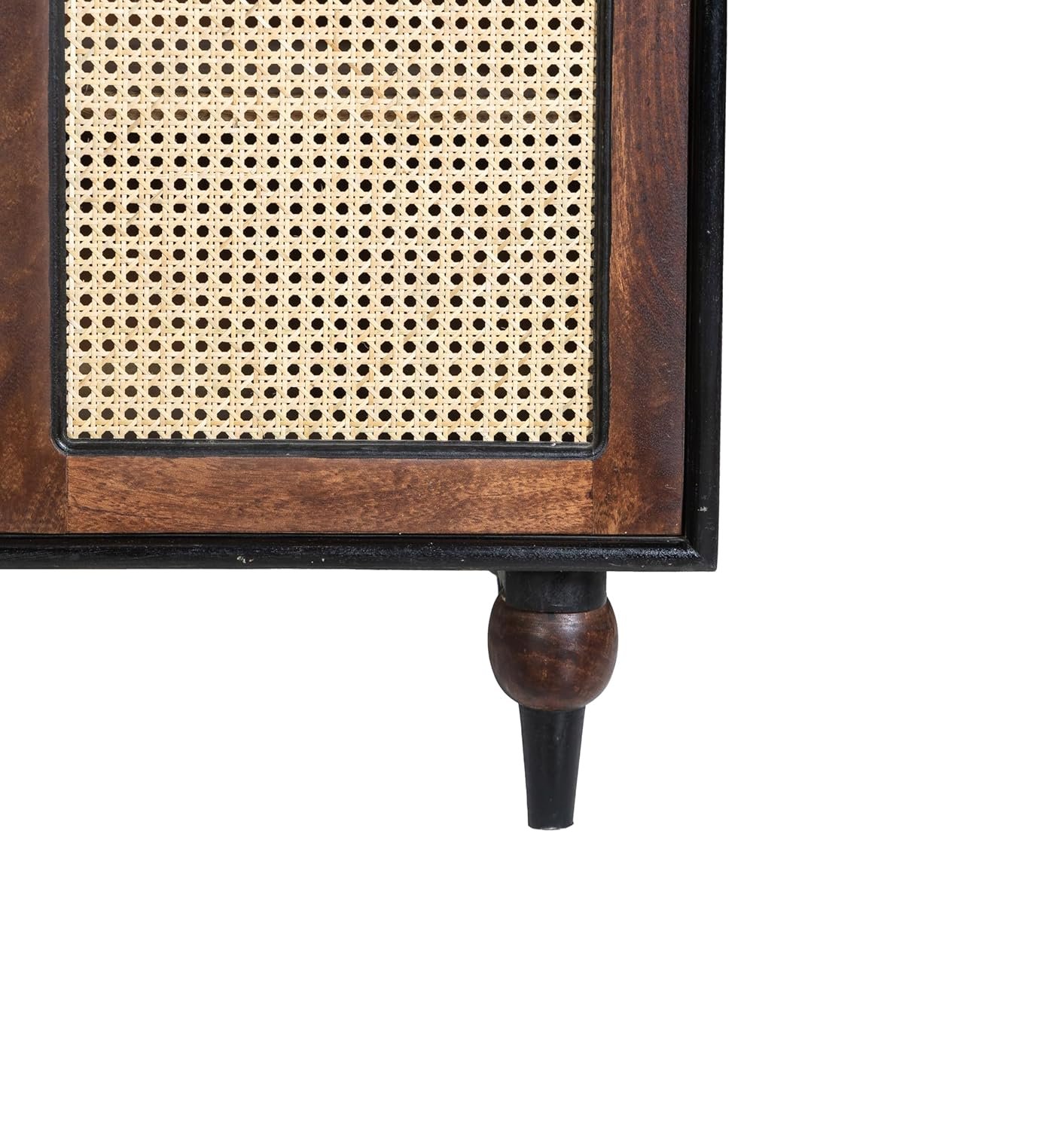 Elevate your living space with the Kraft Bazaar “Luffy” Solid Wood TV Console, a perfect blend of traditional craftsmanship and modern design. Handcrafted from premium Sheesham wood, this entertainment unit features elegant natural cane (rattan) paneling for a warm, organic touch.Finished in a rich Panther Black and Tubaq dual-tone, this cabinet offers both durability and sophisticated style. Its spacious design includes ample storage compartments for your media devices, accessories, and décor essentials — keeping your living area neat and stylish.Whether placed in the living room, bedroom, or lounge, the Luffy TV stand creates a visual statement with its timeless aesthetic and practical utility.