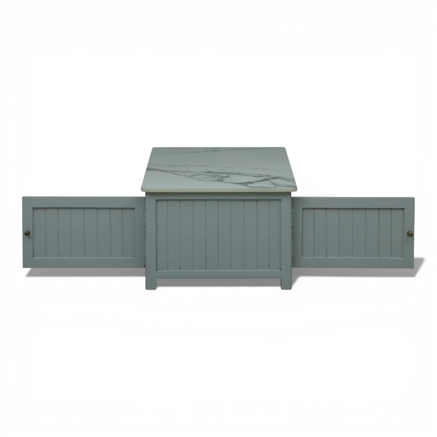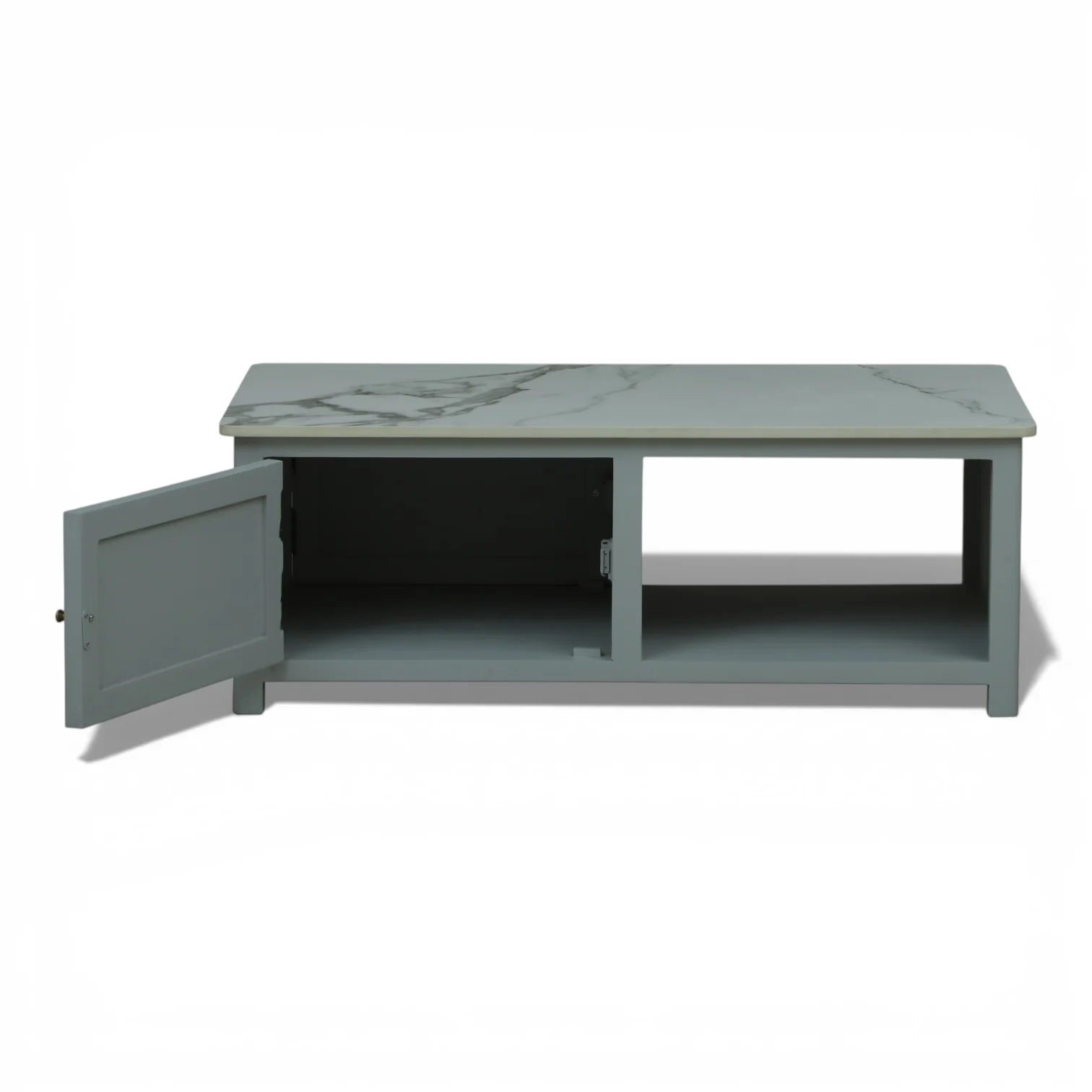 Designed for practical living, the table includes a closed cabinet for concealed storage and an open shelf for displaying books, décor, or everyday essentials. Built with a sturdy wooden frame and clean lines, this coffee table serves as both a functional centerpiece and a statement piece for your living room.