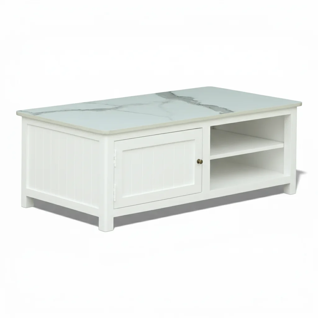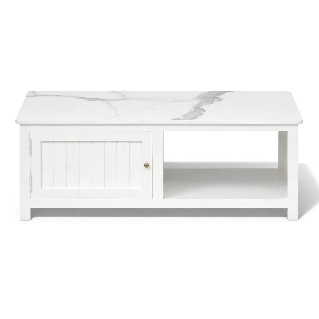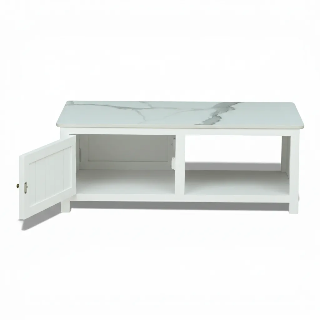 Add a refined touch to your living space with this stylish coffee table, designed to blend functionality with contemporary elegance. The table features a premium sintered stone top inspired by natural marble, offering excellent durability, scratch resistance, and easy maintenance. Its white finish brings a bold yet sophisticated look that complements modern interiors beautifully.