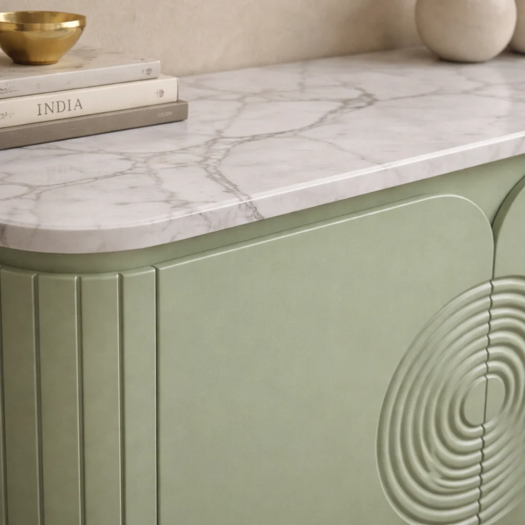 Mandala Sideboard Cabinet | Sintered Stone Top Sideboard for Living Room | Finish- Premium Acrylic Sage Green