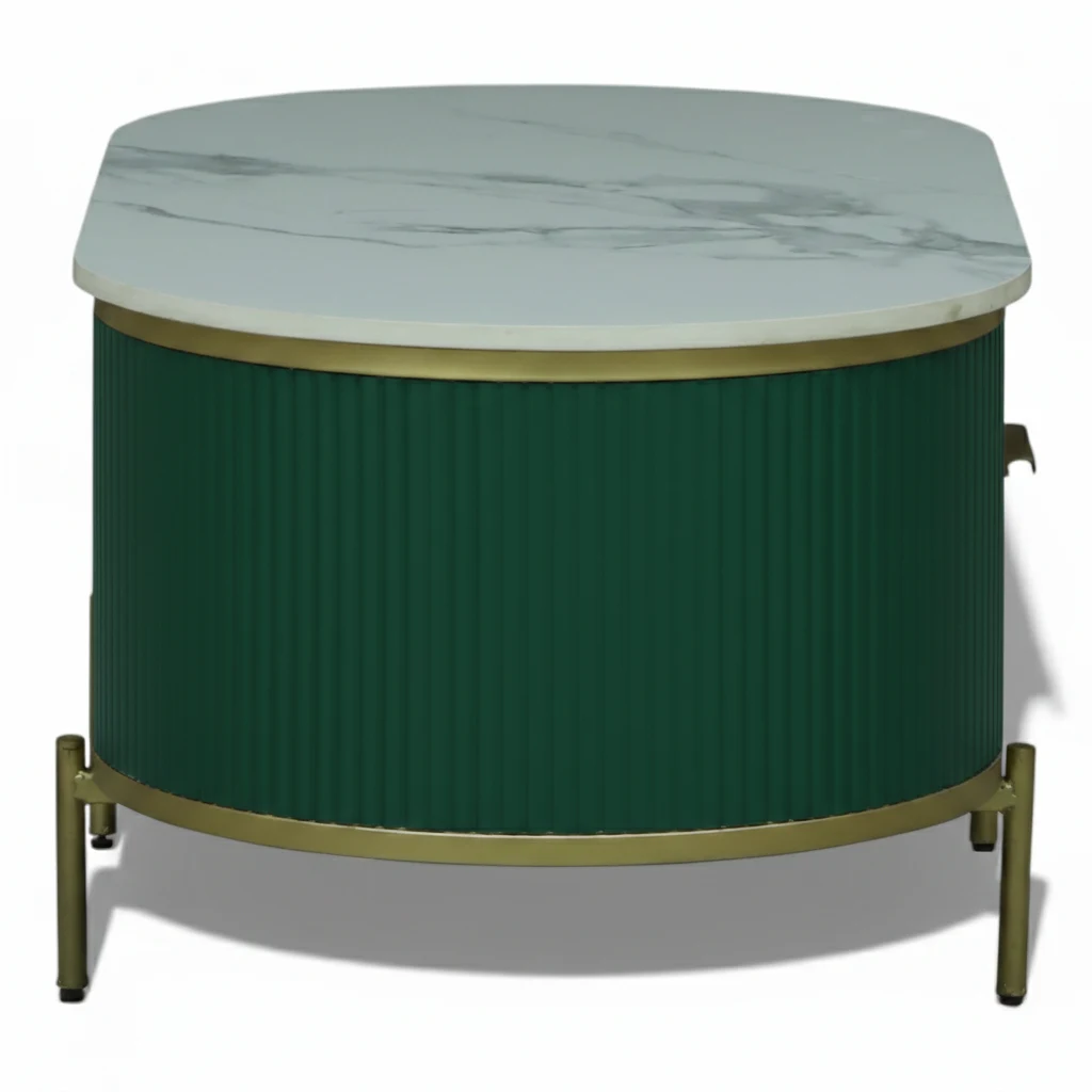 Monaco Center Table | Premium Sintered Stone Top Coffee Table for Living Room | HDMR Centre Table | Finish- Premium Acrylic Emerald Green