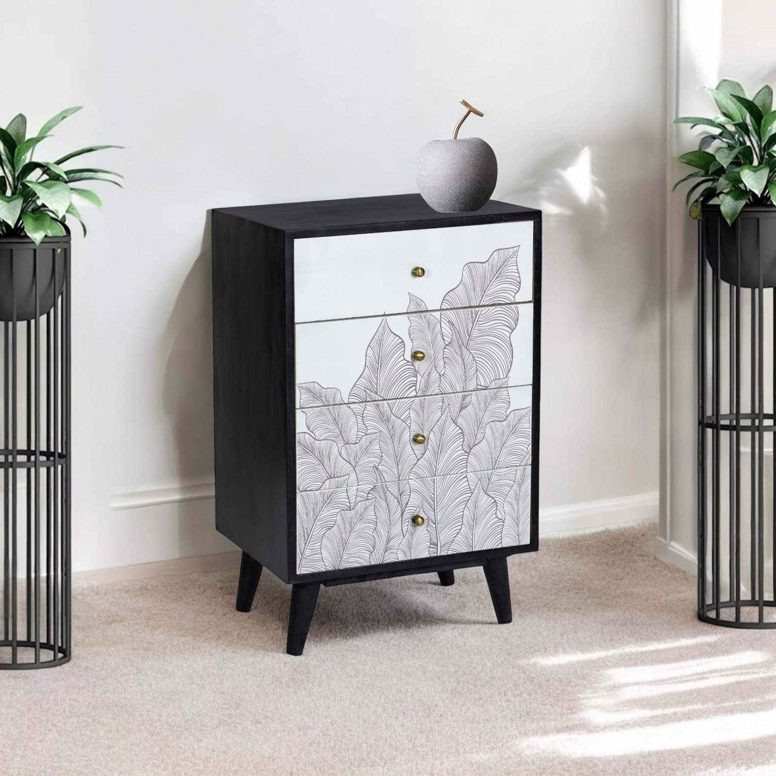 With three spacious drawers, the Ranthambore Chest of Drawers offers a chic and versatile storage solution for your daily essentials. The delicate leaf motif on the striking black drawers transports you to the heart of nature, evoking a sense of calm and serenity.