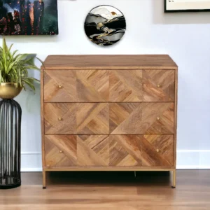 Introducing the “Ranthambore” Chest of Drawers – an enchanting companion to our acclaimed sideboard, embodying the same timeless allure and practical sophistication. Crafted from the finest Mango wood , this chest seamlessly combines the beauty of nature-inspired leaf prints with a functional design. The delicate leaf motif on the pristine white drawers pays homage to the majestic Ranthambore, creating a harmonious connection between your living space and the untamed wilderness.