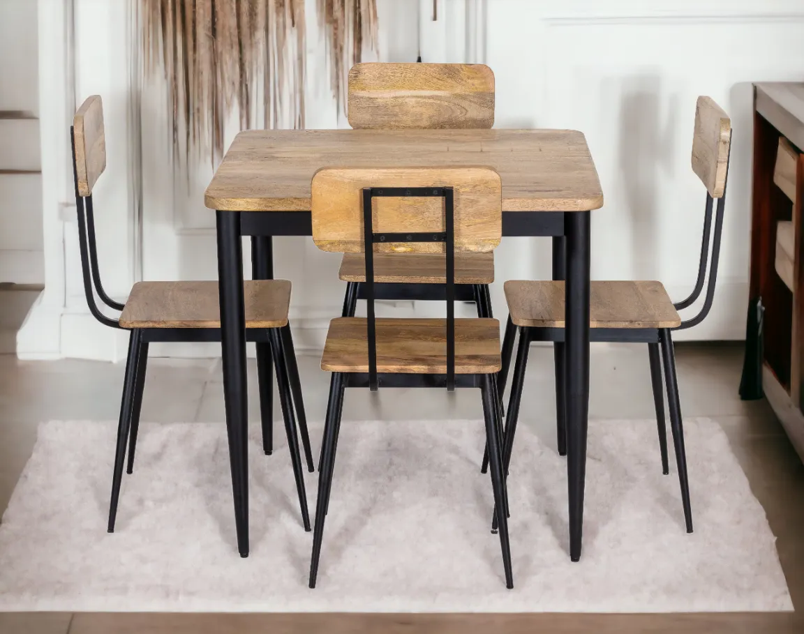 Accompanying the Rio dining table are four matching chairs, completing the ensemble with their impeccable style and comfort. The chairs boast a perfect balance of aesthetics and functionality, designed to provide optimal seating experience. Constructed with the same metal and wood combination, they harmonize flawlessly with the table, creating a cohesive and inviting ambiance.