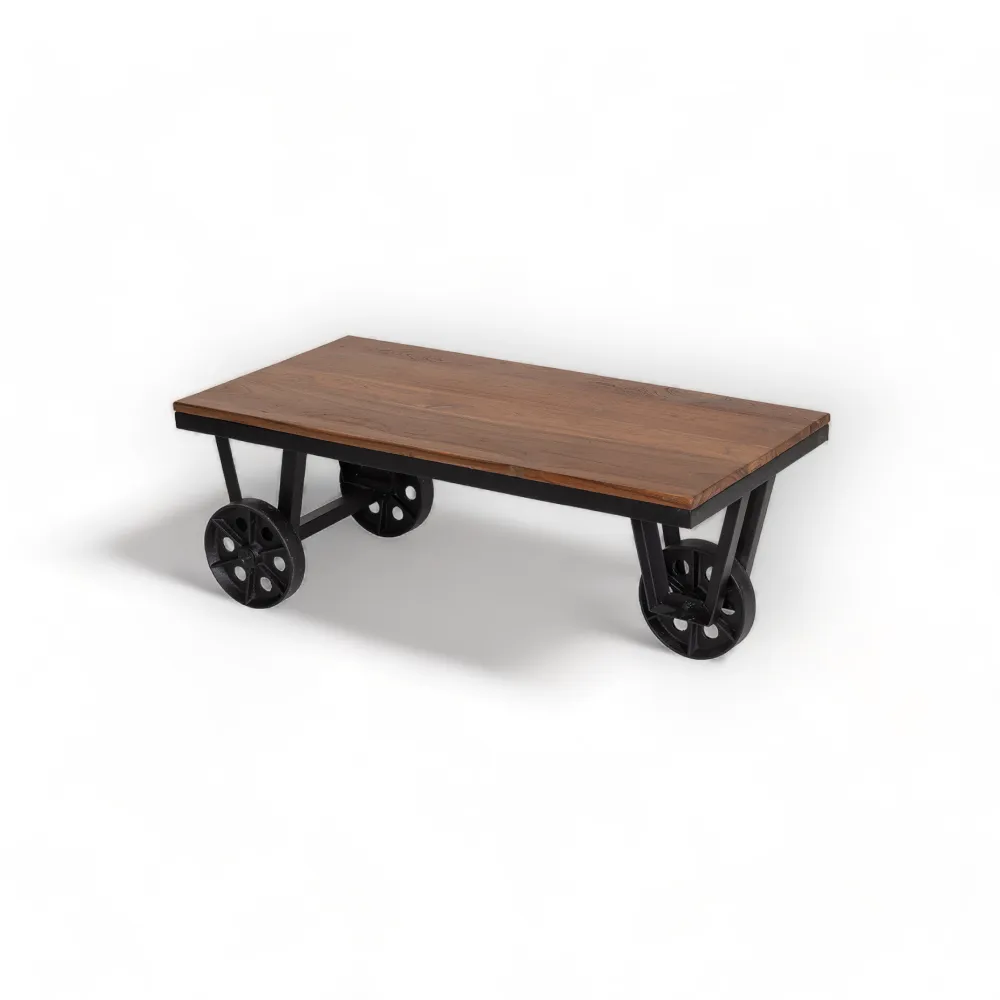 Teak Wood Cart Coffee Table 100×50 cm