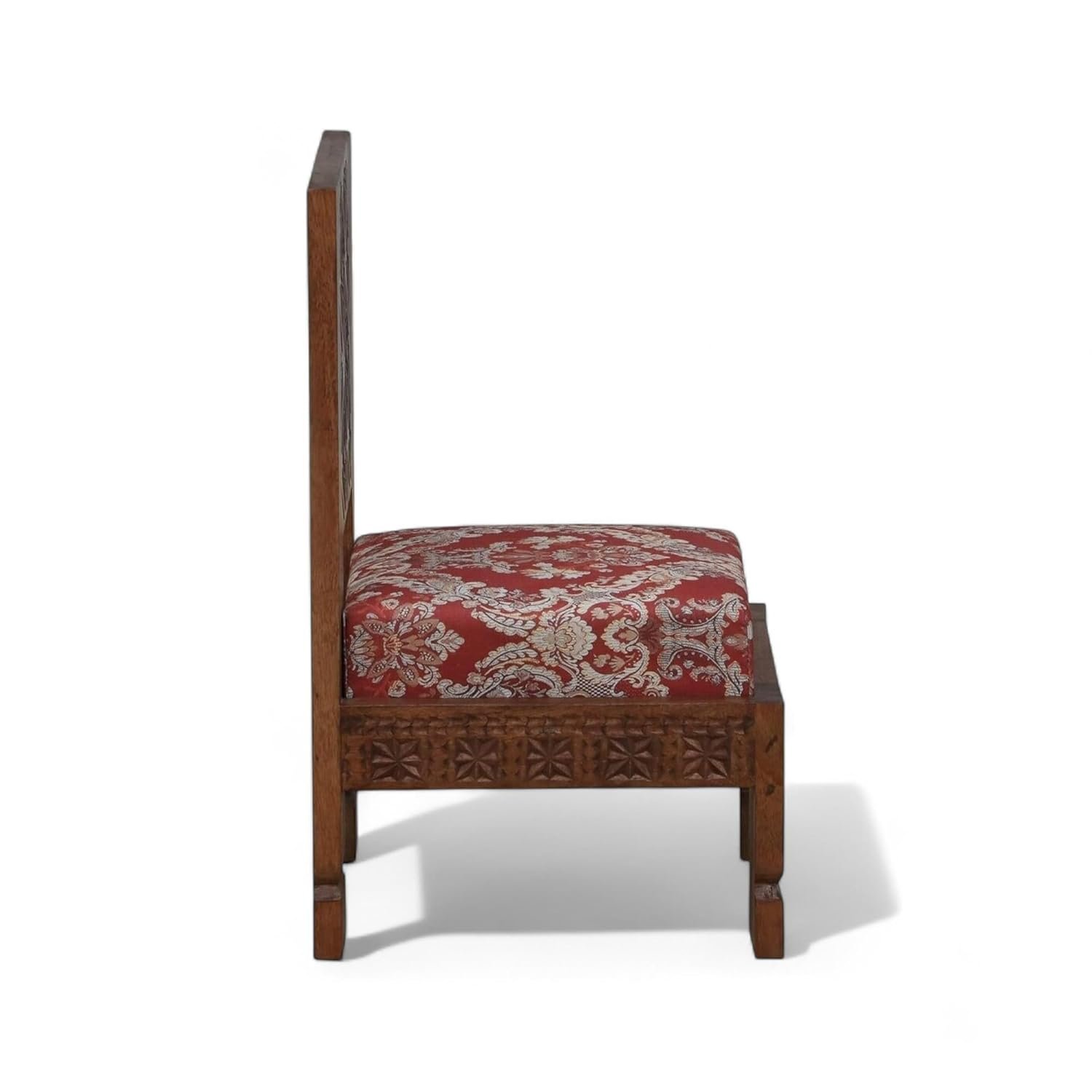 Set of 2 Udaipur-style low seating chairs crafted from premium solid wood. Features intricate hand-carved details and a rich Tubaq finish for a luxurious look. Comes with a 4-inch thick cushioned seat for superior comfort. Ideal for living rooms, lounges, or traditional settings. Strong, durable, and designed to elevate your décor with timeless elegance. A perfect blend of style, comfort, and craftsmanship by Kraft Bazaar.