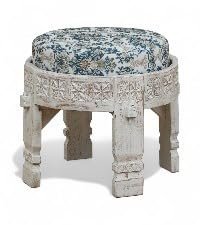 Kraft Bazaar Solid Wood Udaipur Low Seating Stool (Set of 2) – Handcrafted from premium solid wood with intricate Rajasthani carving, this ottoman set brings elegance and comfort to any living room. Featuring a soft 4-inch cushion for cozy low seating, the stools are finished in a charming white distressed polish that adds vintage flair. Ideal for both decor and utility, these versatile pieces blend tradition with modern comfort.
