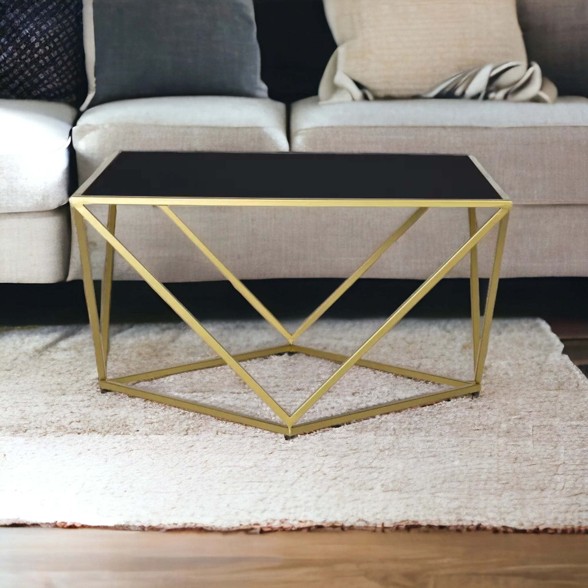 The perfect spot to catch up with friends over a warm drink, the Valerie Coffee table teams clean lines with striking finishes, while subtle details like its geometric base and flush toughened mirror top gives it character. The Valerie Coffee table’s gold finish gives it a premium look. Give the living room a stunning focal point with our Valerie table