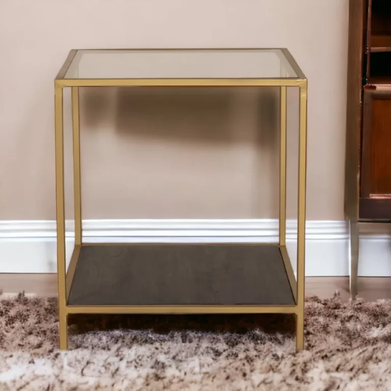 Putting the perfect finish to a living room or open-plan area, our Valerie Side Table combines the on-trend metallic look with a Gold frame finish. Its Wooden Shelf is ideal for keeping books and magazines close to hand while the transparent glass top and open-ended design are great for smaller rooms, as the table gives the illusion of added space.