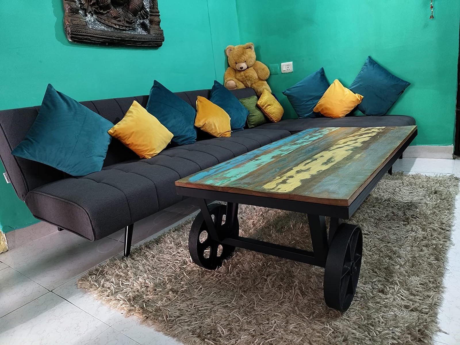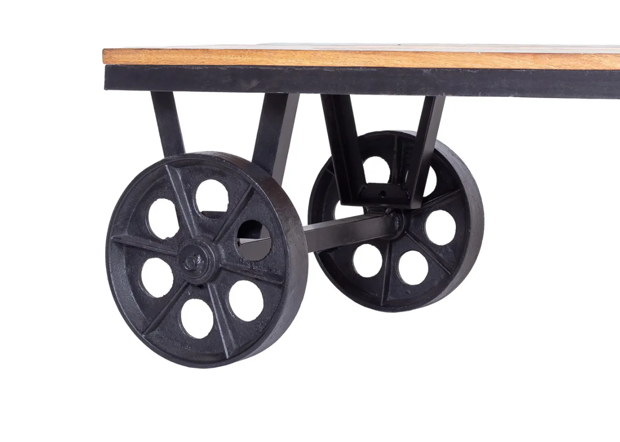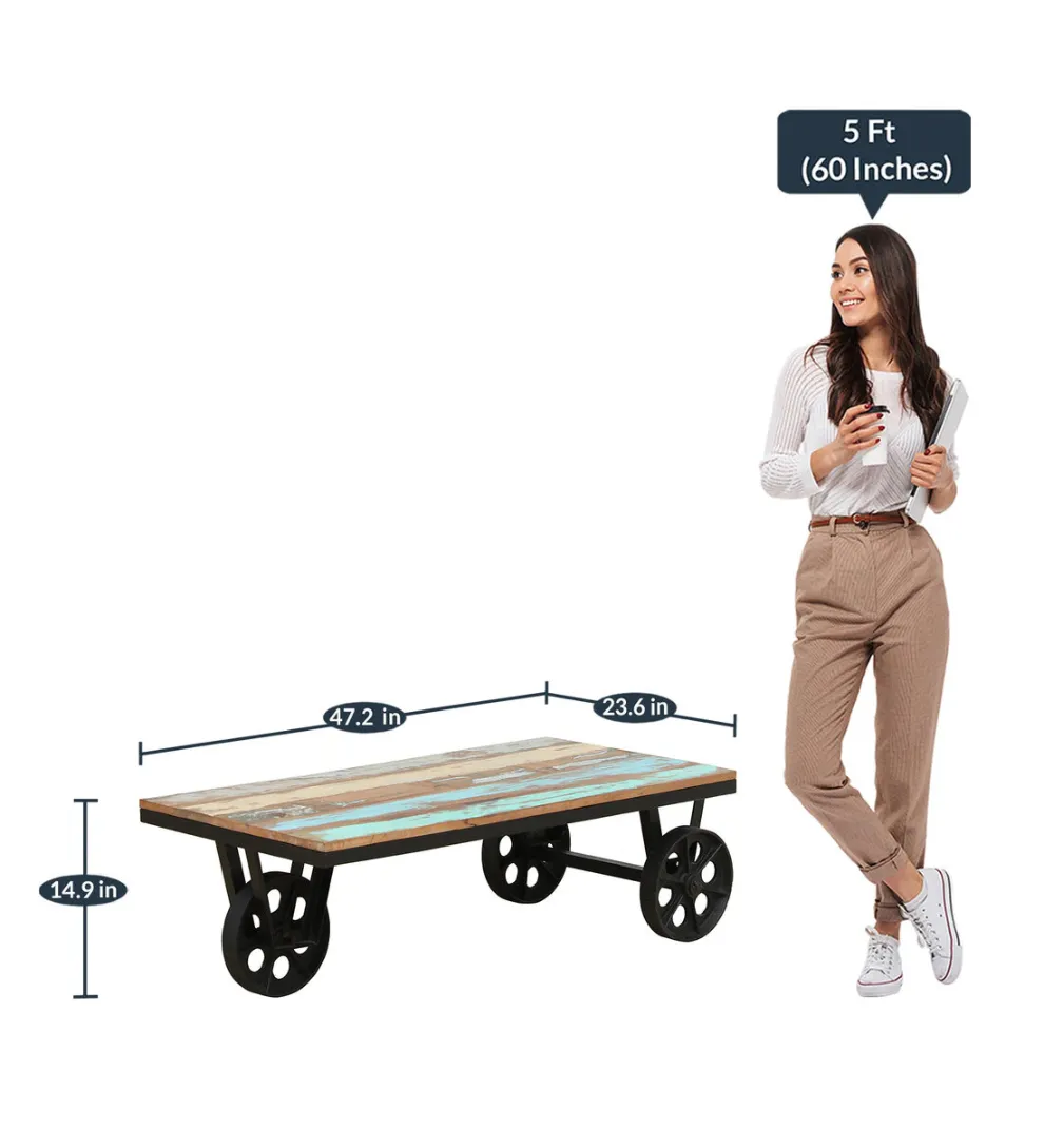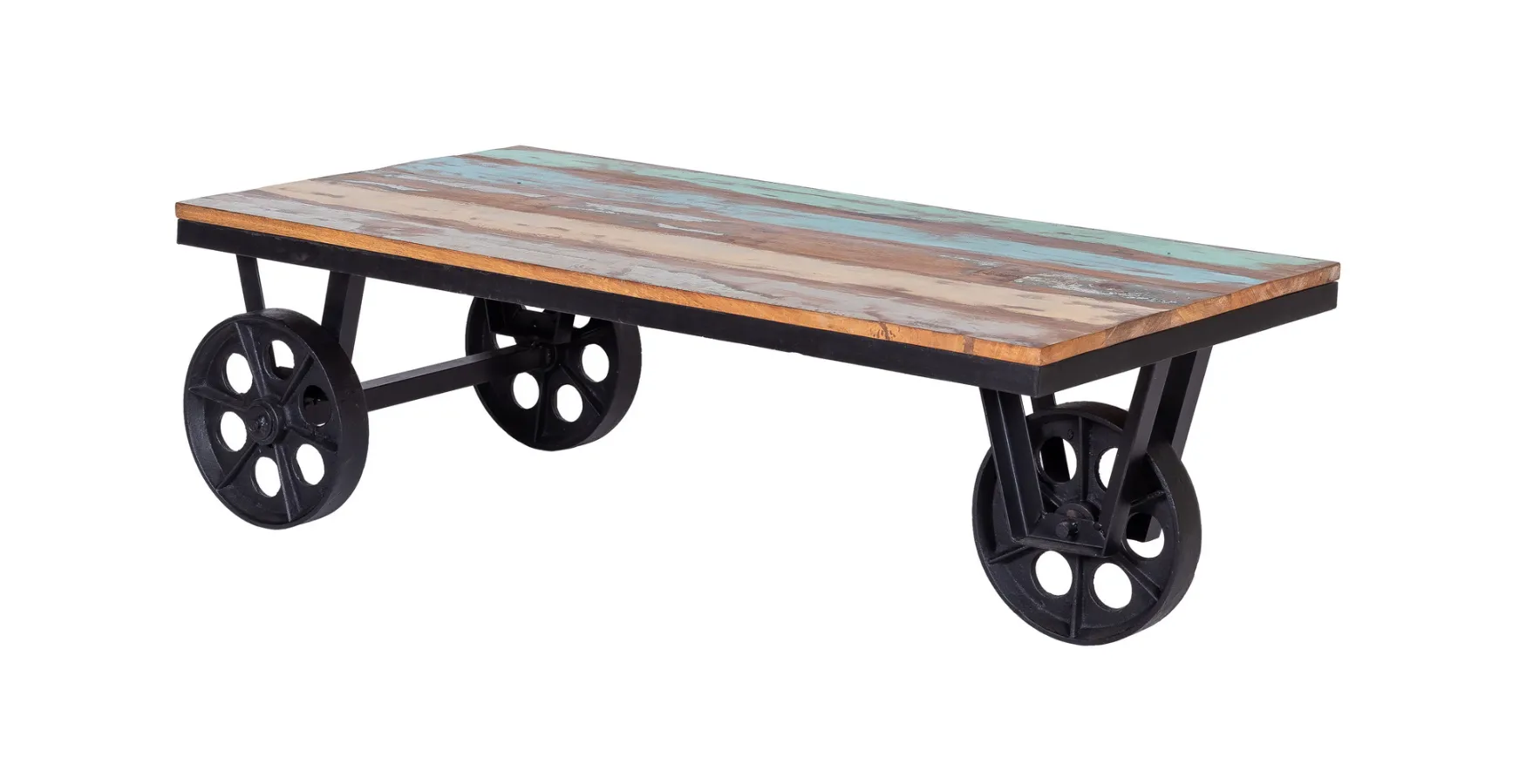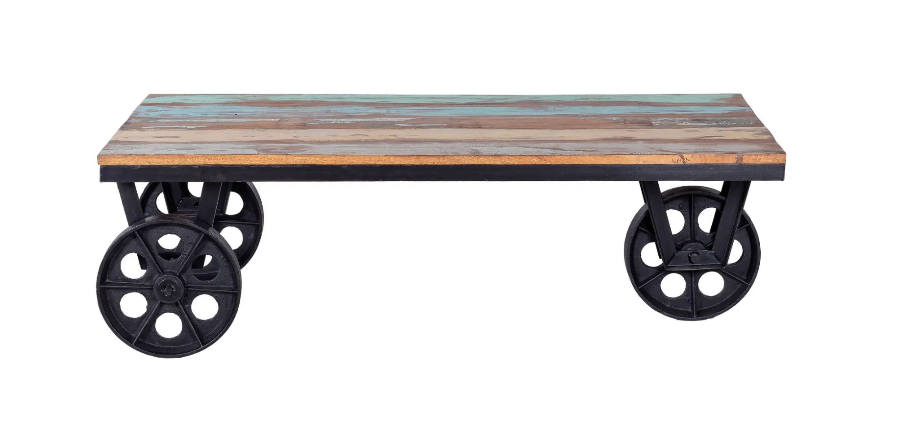The perfect spot to catch up with friends over a warm drink, the Cart Coffee table teams clean lines with striking finishes, while subtle details like its Wheel legs base and Multi-colour distressed finish top gives it character. The Cart Coffee table’s Multicolor distressed finish gives it a unique look while the Cart design makes it perfect for a modern décor set-up. Give the living room a stunning focal point with our Cart table which comes with a Reclaimed wood top.